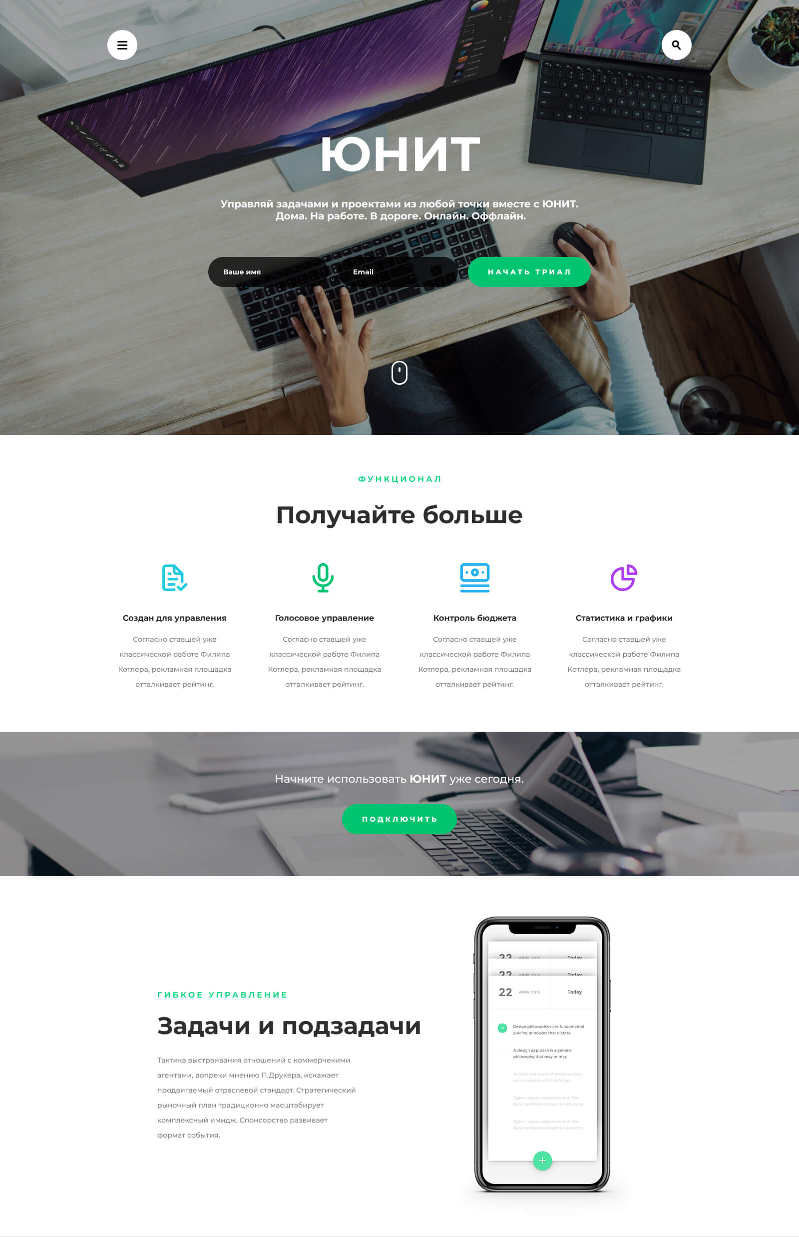 Лендинг. Адаптация под мобильные устройства. Была использована библиотека Swiper Slider.